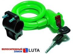 Замок велосипедный детский c брелоком 12*1200мм, зеленый тросик инд. уп. Vinca Sport