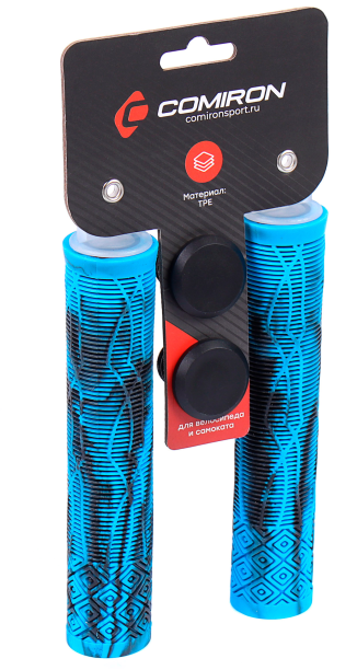 Грипсы для трюкового самоката, 160мм, 2 шт, голубые\черные + 2 заглушки. Упаковка: тайкард. Материал: TPE / SG-160TK-TPE-BlB-BAG