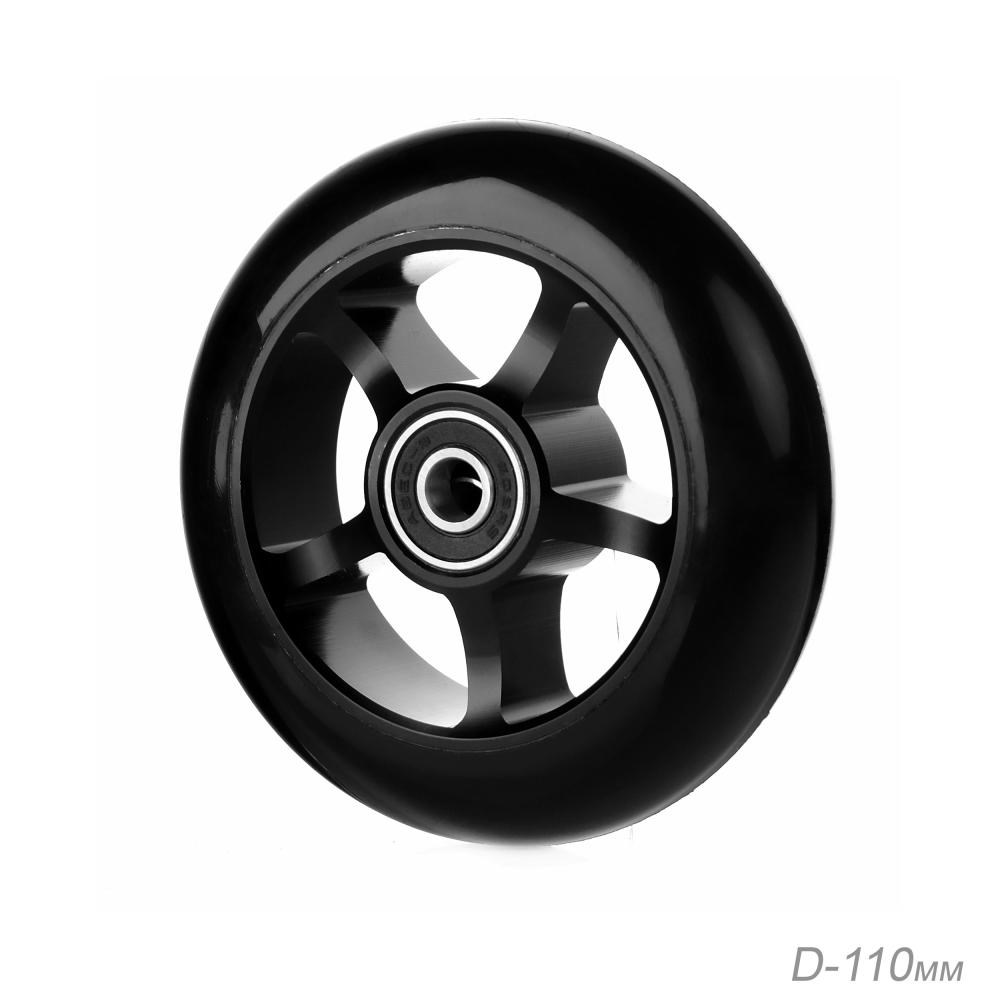 Колесо PU для трюкового самоката 100мм, обод алюминевый анодированный чёрный с подшипниками ABEC-9