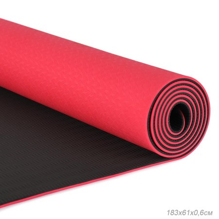 Коврик для йоги и фитнеса спортивный гимнастический двухслойный TPE 6мм. 183х61х0,6 цвет: красный / YM2-TPE-6R