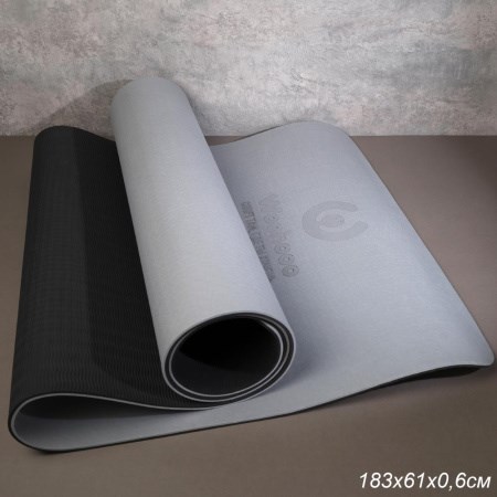 Коврик для йоги и фитнеса Woohooo Whisper / 183x61x0.6 / Black+Grey / Мешок+ стяжка в комплекте