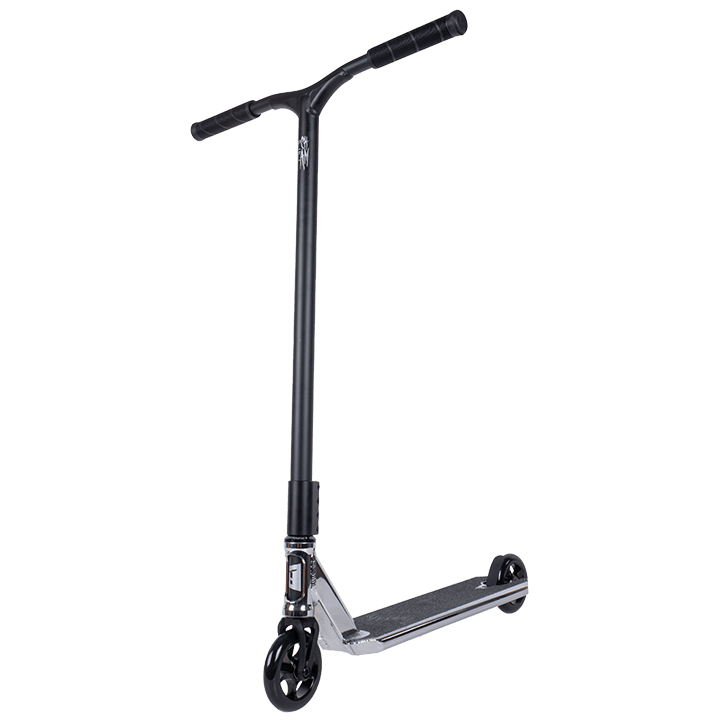 "Y" - руль самоката изготовлен из сплава 6061-T6. Диаметр руля 31,8 мм. Соединяется с декой компрессией SCS и фиксируется зажимом на "шестых" болтах. Высота руля от нижней части зажима 69 см, ширина 58 см. Мягкие резиновые грипсы 155 мм.